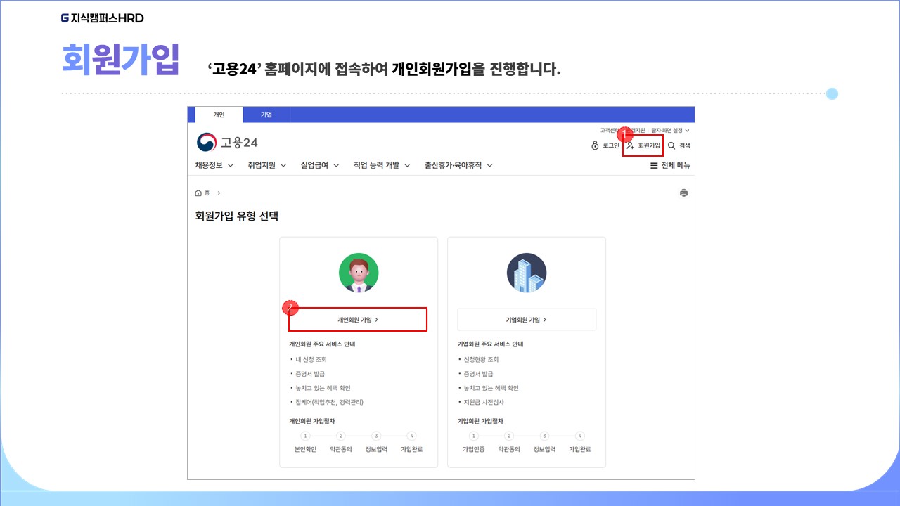 종료된 훈련에 대한 만족도조사 참여 방법 안내드립니다. 참여는 고용24 홈페이지를 통해 진행됩니다.